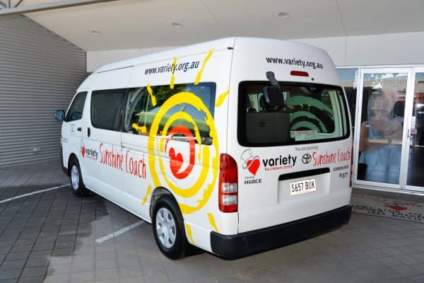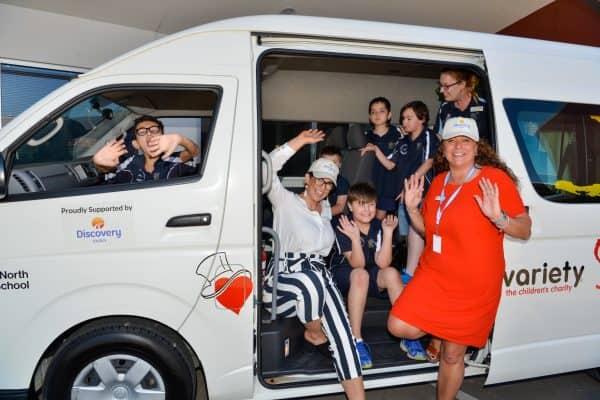 Variety – the Children’s Charity of South Australia has funded a Sunshine Coach to Adelaide North Special School (formerly Elizabeth Special School), made possible through the support of Discovery Parks. The 12 seater, valued at $33,000, will assist their 26 students to get out in the community, something that is essential for their learning, confidence and self-esteem. We were fortunate to have Jane and Sarah from Discovery Parks visit the Variety office to hand over the keys to school teacher Kirsty, and a very well behaved, albeit excited class of students.