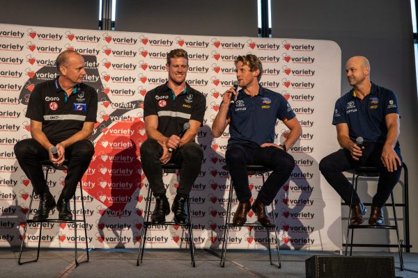 The third annual Variety Showdown Shield Luncheon proudly presented by Jarvis Toyota was a great success. Almost 300 guests attended the William Magarey Room at the iconic Adelaide Oval for a fantastic 2 course meal while enjoying exclusive pre-match insight from: Port Adelaide Football Club and Adelaide Football Club coaches Ken Hinkley and Matthew Nicks, club captains Tom Jonas and Rory Sloane, plus special guest panellists Mark Ricciuto and Dom Cassisi. Hosted by Mark Soderstrom, the Luncheon provided guests a unique look behind the scenes into one of Australia’s best sporting rivalries. Special guest comedian, Lawrence Mooney capped off a fantastic day with his hilarious stand-up routine. All proceeds helping SA kids who are sick, disadvantaged or who have special needs