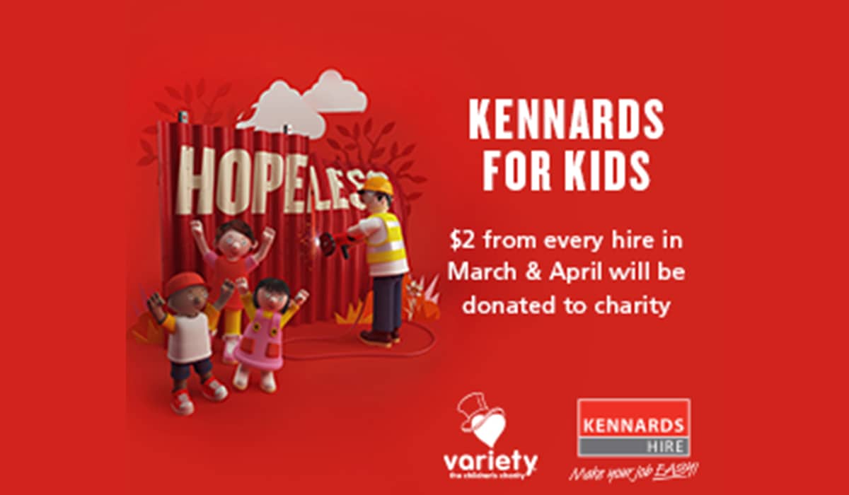 Launching on 1 March and running through to 30 April, $2 from every hire, both in branch and online, will be donated to Variety! Based on the Kennards Hire value system, the campaign will encourage our customers to ‘Hire for a Higher Purpose’ and turn ‘Hopeless’ into ‘Hope’ by hiring equipment from Kennards Hire.